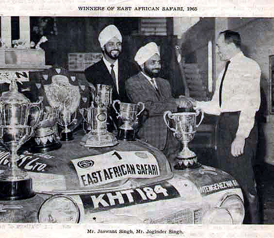 The team of Sikh Heritage and Nostalgic East Africa pay their deep condolence and respect to this true son of Kenya. 8th East African Safari Rally Class B - up to 1000cc Class C - up to 1300cc Class D- up to 2000cc Class E - over 2000cc Class G - Production and GT, any capacity Overall Winner 1 21W.A.Fritschy/J.L.Ellis Mercedes 219 Champion Spark Plug Challenge Cup Other Entrants 84 starters, 25 finishers One of the earliest official records showing Joginder Singh’s participation at age 27.