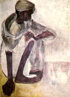 been so excited about in Ajanta that while at Cape Comorin she executed However it was not until her return to Simla that she painted what has often been called her South Indian Trilogy: The Bride's Toilet The Brahmacharis and South Indian Villagers going to Market. She later described The Brahmacharis as the most difficult thing she had ever done; but she seems to have derived a sense of satisfaction from it, for she asks in a letter- 'don't you think I have learnt something from Indian painting?' (Karl Khandalavala, 15-6-'37). That she was not concerned with representing specific types of Indians is demonstrated in that she was content to use Pahari and even Sikh models for the Trilogy. In her paintings, entitled Hill Men and Hill Women, there is nothing, which particularises a definite ethnic type. She was concerned with developing a certain personal facial type with whose expression she identified her own feelings. In the large-eyed, dark and angular faces with their pouting lips (which can be seen in much of her work until 1937) there is even a vague reminder of the way she herself used to make up. At this point there is a startling change in the artist's development. Perhaps