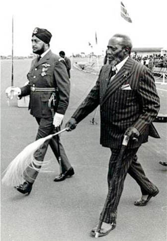 Gurcharan Singh Chana (Chani) was Base Commander of the Kenya Air Force, Eastleigh, which is the largest and main Air Force Base and Air Force Headquarters in Kenya and he was an Air Force pilot and Colonel. Chani's story in East Africa and his contribution as a Sikh in the community is prominent. Here he is seen escorting the Kenya President Jomo Kenyatta at the Eastleigh Airport.