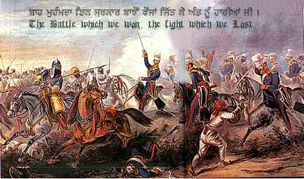 Once again Tej Singh deserted the army and even cut the boat bridge which linked the Sikh forces to the opposite bank of the river leaving them to perish under deadly showers of shrapnel as they tried to swim across. Describing the battle at Sabraon as the "Waterloo of India", Lord Gough paid great tribute to the Sikh soldier: A Policy precluded me from publicly recording my sentiments on the splendid gallantry of our' fallen foe, or to record the acts of heroism displayed not only individually, but almost collectively, by the Sikh Sirdars and the Army. and I declare, were it not for a deep conviction that my country's good required the sacrifice, I would have wept to have witnessed the fearful slaughter of so devoted a body of men." General Sir Joseph Thackwell who witnessed the battles wrote, "for though defeated and broken, they never ran, but fought with their talwars to the last and I witnessed several acts of great bravery in their sirdars and men". Lord Hardinge, who saw the action, wrote, "Few escaped, none it may be said, surrendered. The Sikhs met their fate with the resignation which distinguishes their race." This was a major British victory against a people afflicted with internal treachery and treason and was the beginning of the end of the Great Sikh Durbar. The British Governor General of India, Sir Henry Hardinge laid down stiff terms, including cession of the districts of Kashmir and Hazara. Within hours, Gulab Singh Dogra accepted the conditions and so ended, nominally, the First Anglo-Sikh War. The traitors Lal Singh and Tej Singh were "immortalised" in doggerel verse, to quote a historian punning on their names: Laloo lost the blush of shame, Teju lost his lustre, By turning their backs in the field They turned the tide and the battle yield. The Second Sikh War As British Regiments were now garrisoned in Lahore, it was obvious the conspirators had succeeded in their aims. The Sikh Army was disbanded and a convention entered into for the administration of the Government by a Council at Lahore under a British Superintendent during the minority of Dalip Singh, the youngest of Ranjit Singh's sons. The country between the Beas and Sutlej, comprising the districts of Jullundur, Hoshiarpur and Kangra, was transferred to the British. Retaining suzerainty, they sold the valley of Kashmir to Raja Gulab Singh Dogra for a paltry five million rupees. The disgusted Sikh soldiers, whose regiments had been disbanded, realised the extent of their betrayal, and the feeling of revenge mounted. The sense of outrage of the disbanded Sikh troops and patriots was to be the root cause of the Second Anglo-Sikh War. In the forthcoming battle of Chillianwala the Sikhs, now under able and upright commanders repaid the debts they owed and this time treachery did not quite work for the British. In the British view there was to be no war in the next decade. Lord Hardinge, the British Governor General had ordered a reduction in the army but as subsequent events proved, this belief was ill conceived. The first to challenge British domination was Diwan Mulraj, the Sikh Durbar's Governor of Multan and Sardar Chattar Singh Attariwala at Hazara. Chattar Singh's son Sher Singh Attariwala followed his father's example and also threw his forces against the British. On hearing of Lord Gough's advance on Lahore, Sher Singh Attariwala in a tactical move, sent covering troops through the fords towards the river's left bank, for delaying the enemy's advance and sending early waming. To cover this maneuver, Sher Singh deployed heavy artillery on the left bank of the Chenab: a stratagem which was overlooked by Lord Gough as he led the British advance party to attack the troops of the Sikh advance guard who were now retreating on Sher Singh's orders. The British came under fire of the Sikh guns on the right- bank and it soon became evident that the British position had become untenable. Under cover of their artillery the Sikh infantry and cavalry carried the day. The Sikhs captured British guns and the colours of a British regiment, this victory at Ramnagar giving a much-needed boost to their morale. Stunned by the defeat, Lord Dalhousie took the initiative in his own hands and directed his General Staff to prepare a blanket attack on the Sikhs before they could strengthen their positions. The main action plan of the British was to prevent a union of Chattar Singh's army from Attock and that of Sher Singh's. However, in the meantime the British had defeated Mulraj at Multan and felt adequately rejuvenated to face the now united army of Chattar Singh and Sher Singh Attariwala. Battle of Chillianwala In an amazing coincidence, the battle of Chillianwala was fought in almost the same area where Porus, with his elephants, chariots, and archers, had fought Alexander's cavalry 2175 years earlier. Sher Singh displayed exceptional skill by judiciously selecting his position which was protected on the left by a low ridge of hills intersected with ravines and the main stream of the Jhelum, the right being posted in different villages enclosed by a thick jungle. On 13 January 1849 the British launched their attack. Their artillery advanced to an open space in front of the village of Chillianwala and opened fire on the Sikh artillery. The Sikhs replied with a vigorous cannonade. As the fire ceased the British drew up in order of battle and charged at the enemy's centre in an attempt to force the Sikhs into the river. The assault was led by Brigadier Pennycuick. For the Sikhs, the conditions were made to order. Scattering into the brushwood jungle they began their hit and run tactics, their snipers taking a heavy toll of the British cavalry and infantry. Those that got through the brushwood and the ravines were easily repulsed in the hand-to-hand fighting with the main body of the Sikh troops. Brig. Pennycuick leading the Brigade in the front fell as did his son Ensign Pennycuick who was mortally injured while trying to protec